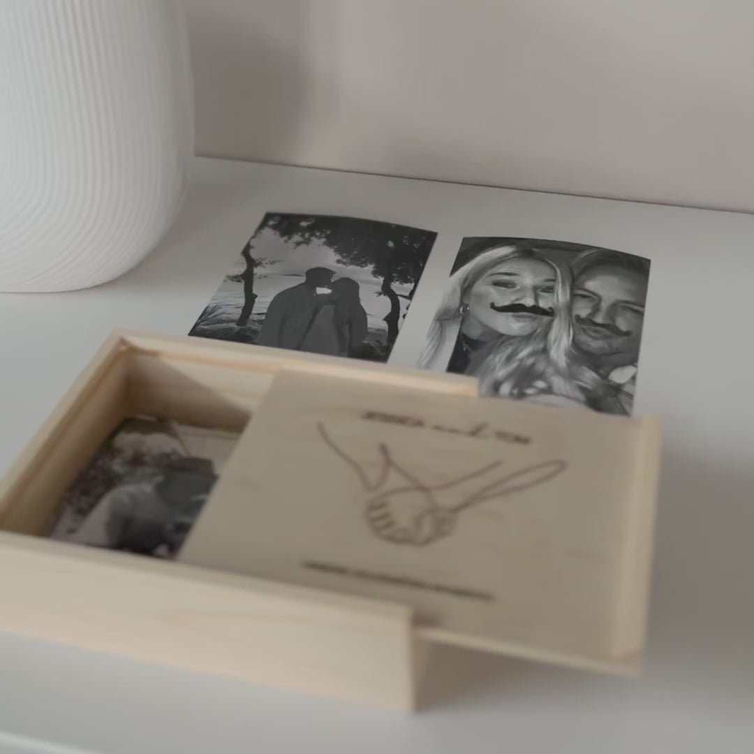 - Fotoboxen mit Wunschgravur: Unsere Fotoboxen werden mit einer Wunschgravur veredelt, um Ihre persönliche Botschaft oder den Anlass festzuhalten. So entsteht nicht nur ein Geschenk, sondern ein zeitloses Erinnerungsstück, das für immer geschätzt wird.