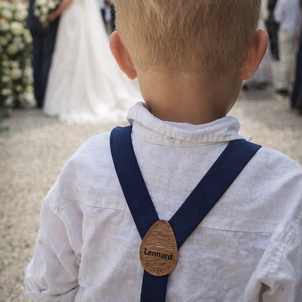- Einzigartige Gravur: Jeder Hosenträger wird mit einer individuellen Gravur versehen, sei es der Name des Kindes, ein besonderes Datum oder eine liebevolle Botschaft. So wird jedes Paar zu einem einzigartigen Accessoire, das Geschichten erzählt.