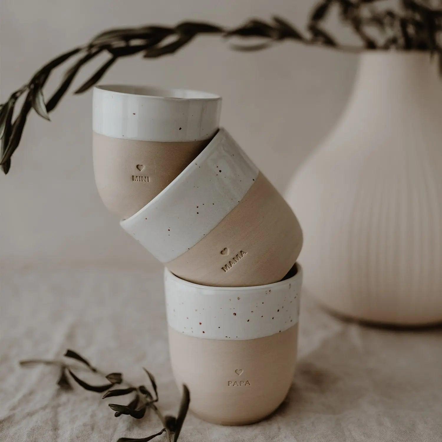 Kombiniere den Becher „Mama“ mit dem passenden „Papa“-Becher als liebevolles Tassen-Set für Eltern – eine wunderschöne Geschenkidee für Familie, Freunde oder dich selbst.